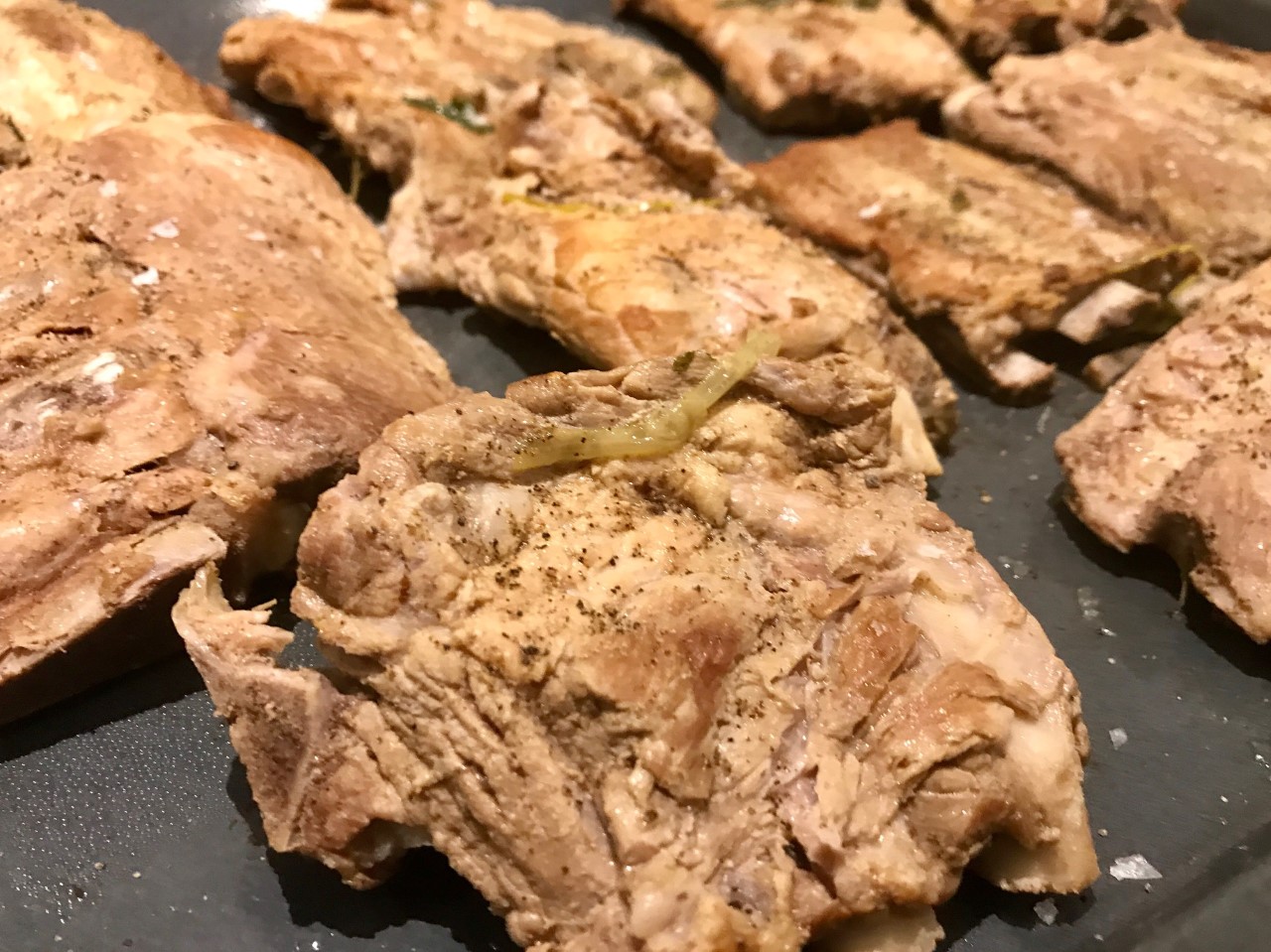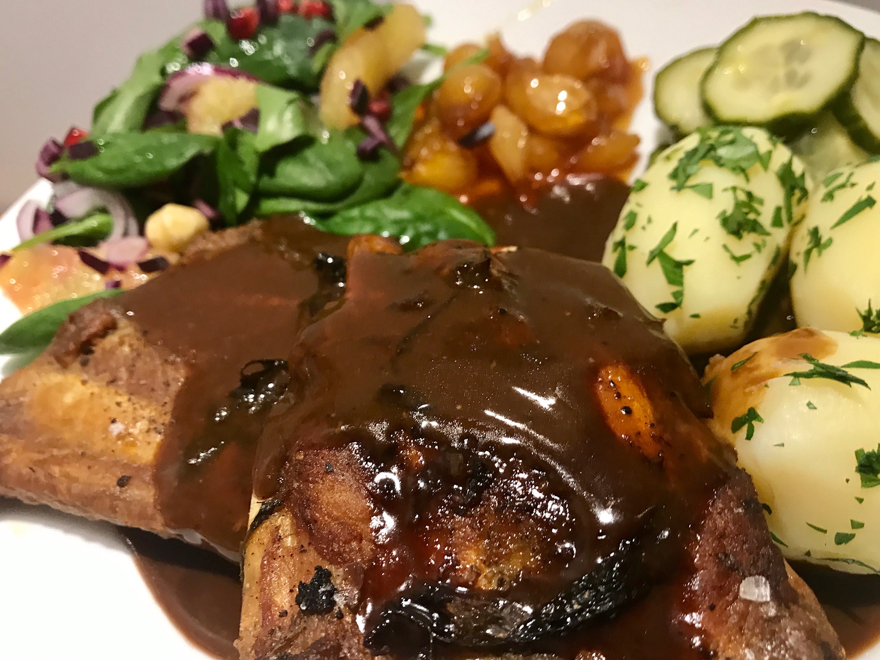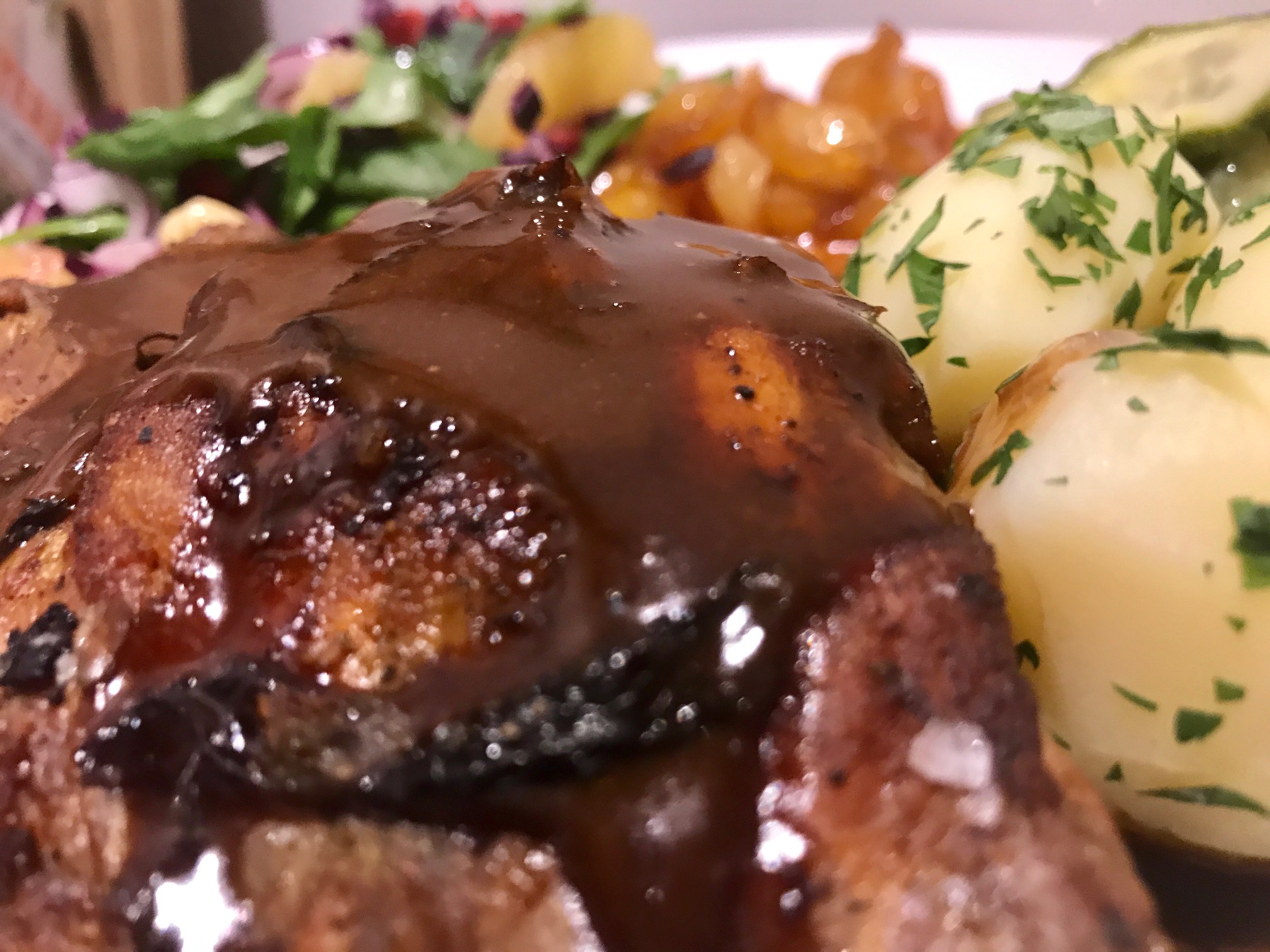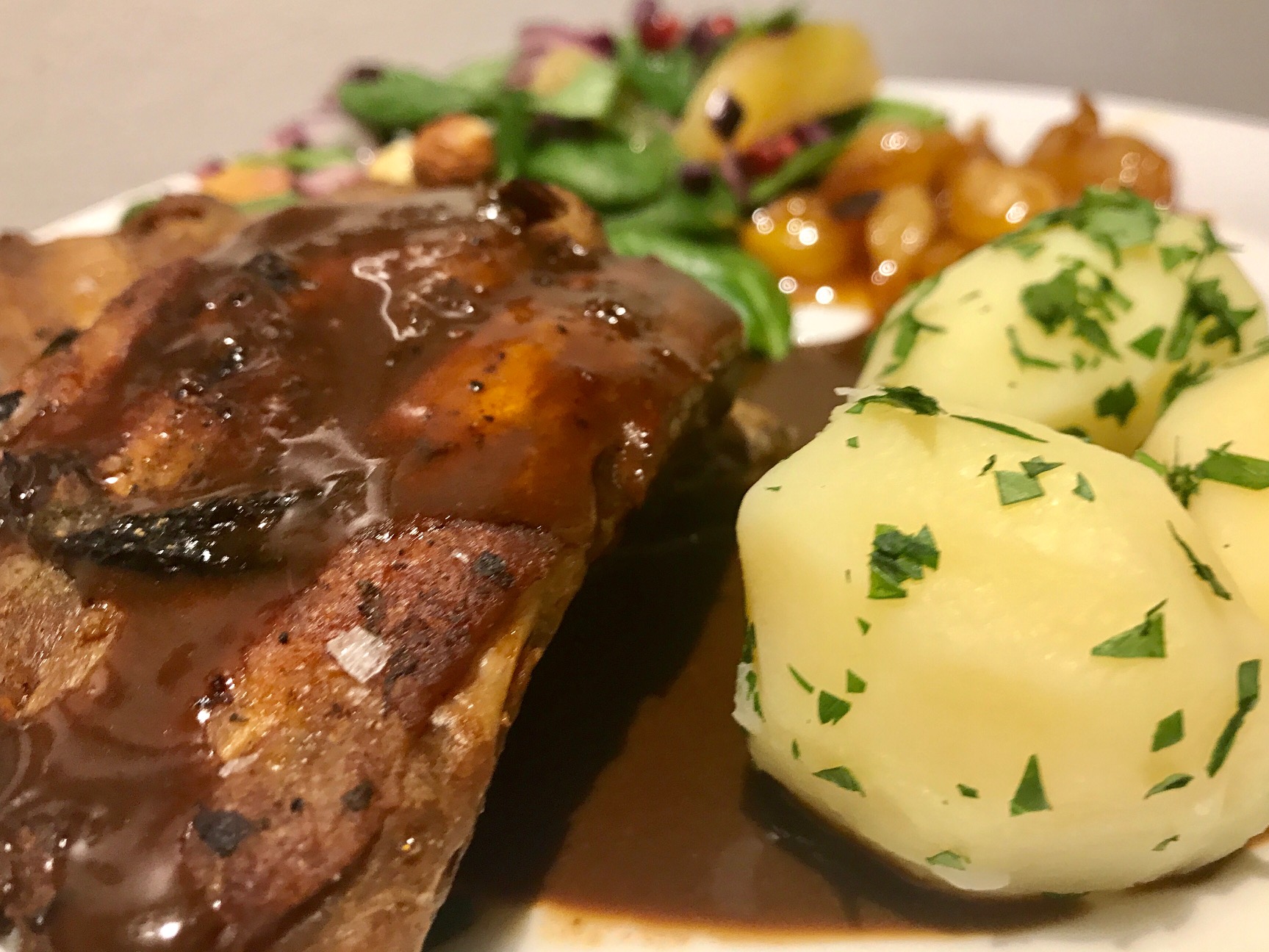 Gode ben var nemlig en af min fars store hofretter, han var en sand gode-ben-mester, og jeg var tit hans assistent. Jeg ved, at flere af mine nærmeste venner fra denne tid ville give mig ret – det rygtedes i blokken, når menuen stod på gode ben. Retten har jeg kun serveret for min egen familie et par gange – jeg marinerer som regel altid denne udskæring (ribben) i noget barbecue og smækker dem på grillen, men jeg har indset at denne ret ikke må gå i glemmebogen igen.