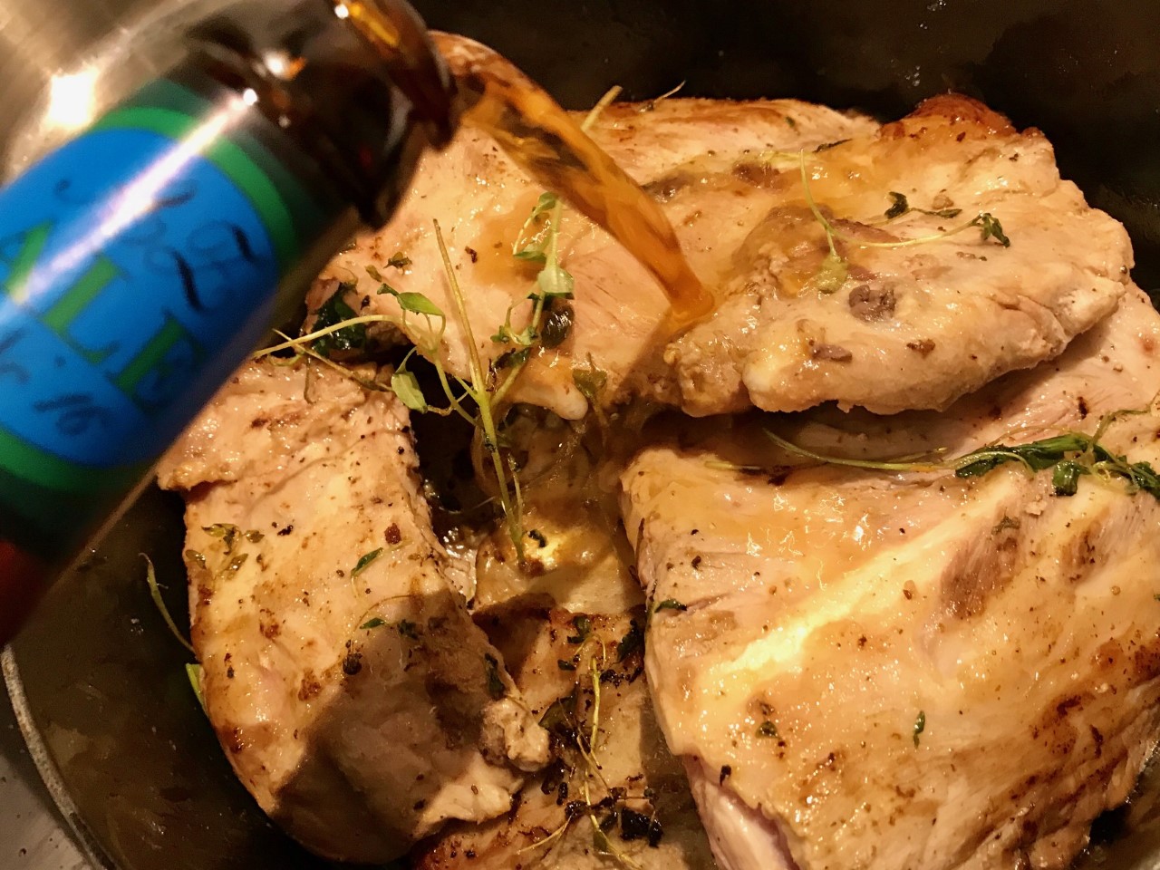 - Svits løg, porrer, hvidløg og selleri en hurtig omgang i gryden når alle ben er brunet, læg herefter det hele i tilbage i gryden og hæld øl og vand på, det skal lige netop dække kødet. Lad det simre i knap 2 timer, skum af undervejs. Brug ventetiden på at forberede tilbehøret, lav agurkesalat, skræl kartofler, bland salat og lav evt. de glaserede perleløg – de kan opvarmes kort før servering.